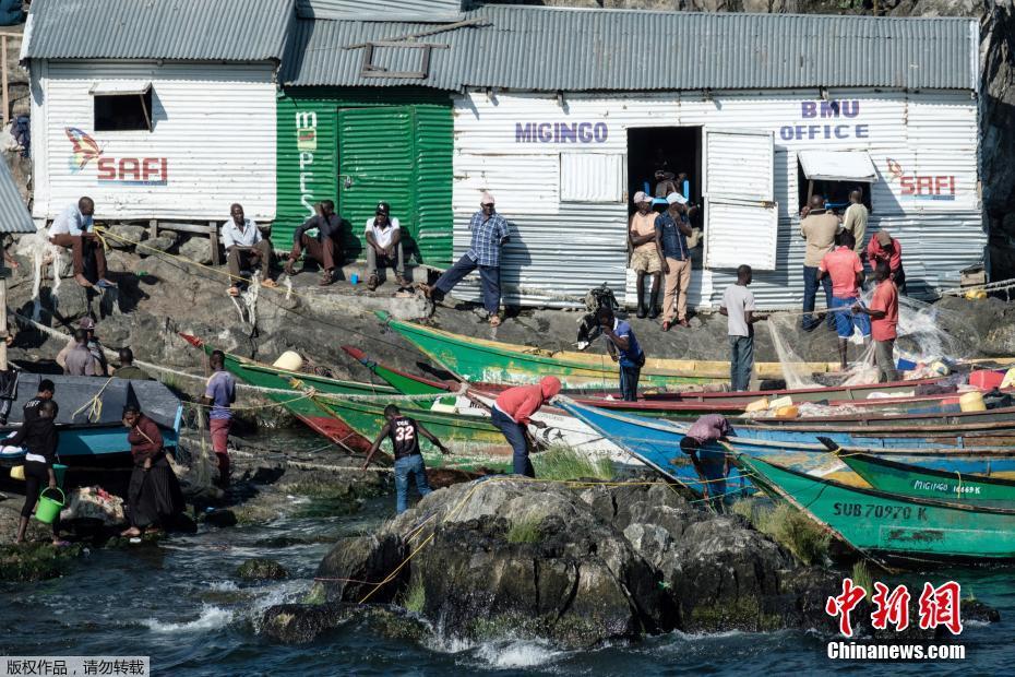 从天空看米金戈岛,几乎看不出是一个岛屿,岛的表面被密密麻麻的铁皮小屋覆盖。显得无比的拥挤,集市时人们甚至无法从街道上通过。岛上的居民主要以捕鱼为生,人们工作一周的收入相当于本地非洲人2-3个月的收入。不要看这个岛小,岛上可是有着4个小酒馆,几个妓院,一个警察局,还有一个药房。图为米金戈岛上的渔民。