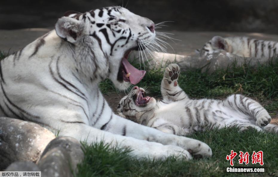 秘鲁动物园白虎宝宝疯玩撒欢 咬兄弟尾巴逗趣十足