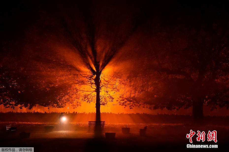 当地时间10月31日,爱尔兰阿斯博伊,一名男子走在雾气中。