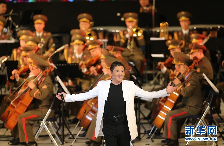 11月3日,在朝鲜平壤,中国歌手孙楠在演出现场演唱。 中朝文艺工作者首场联合演出当日在平壤万寿台艺术剧场举行,中朝两国文艺工作者联袂奉献了两国人民喜爱的歌曲、舞蹈等节目。 新华社记者 程大雨 摄