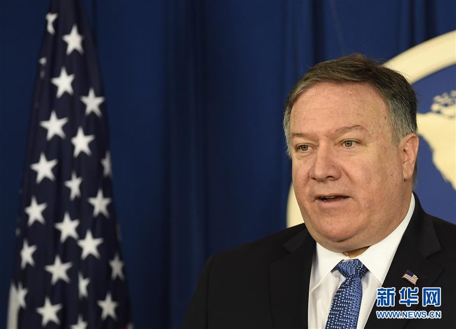 11月5日,在美国首都华盛顿,美国国务卿蓬佩奥在记者会上发言。 新华社记者刘杰摄