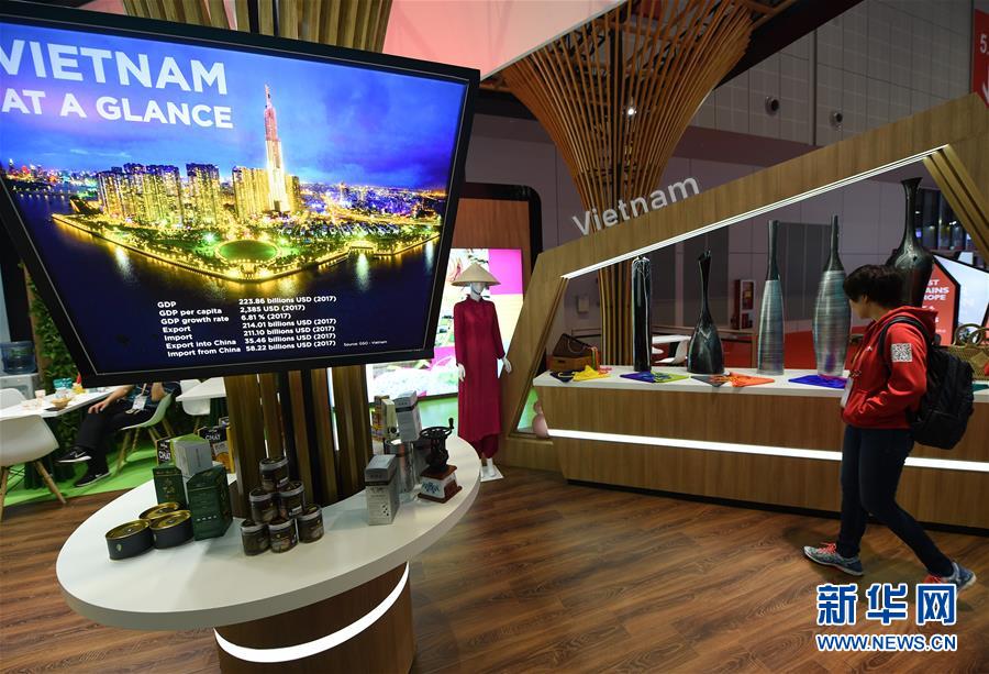 11月5日,一名媒体记者在越南展馆内参观。 新华社记者 韩瑜庆 摄