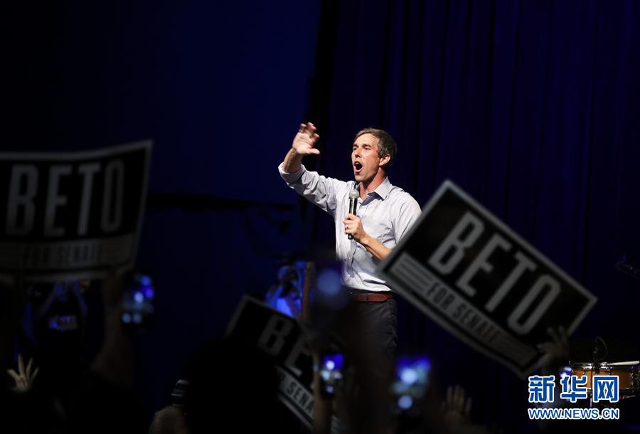 11月5日,在美国得克萨斯州休斯敦,民主党参议员候选人贝托·奥罗克参加竞选活动。新华社记者王迎 摄