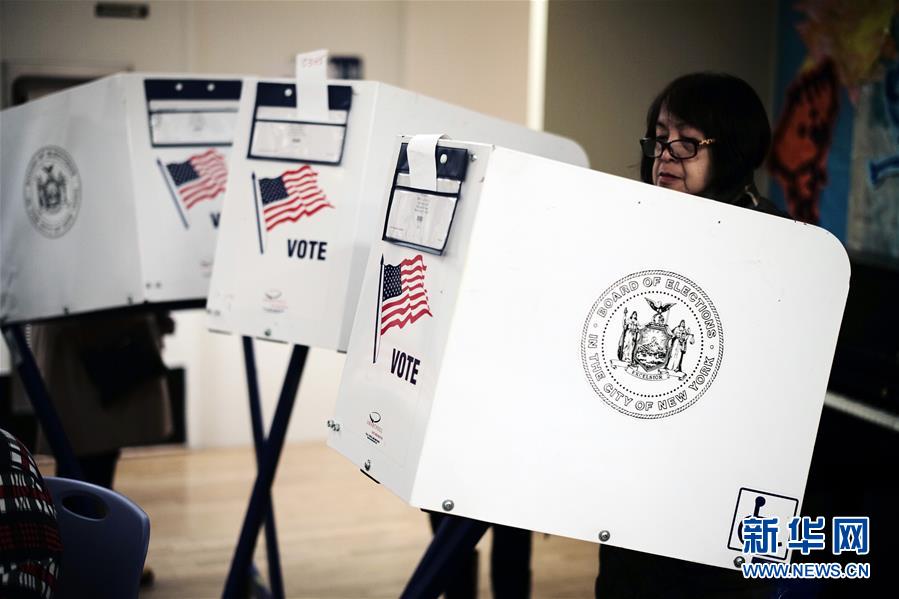 11月6日,在美国纽约曼哈顿,一名选民在一处投票站填写选票。 当日,美国迎来2018年中期选举投票日。新华社记者李木子摄