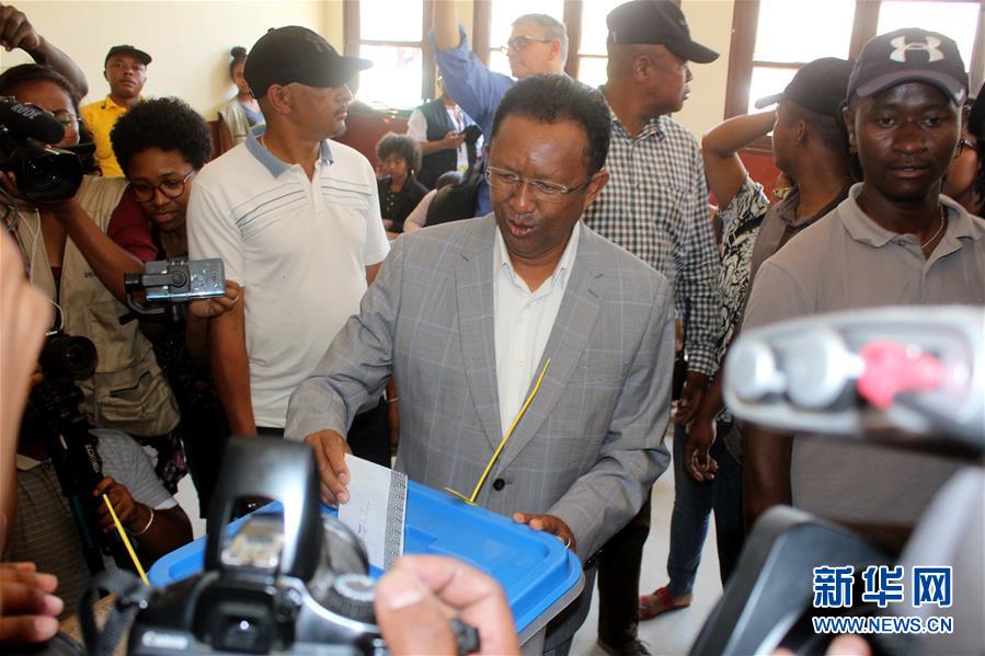 11月7日,在马达加斯加塔那那利佛,总统候选人埃里·拉乔纳里曼皮亚尼纳参加总统选举投票。 马达加斯加7日举行总统选举首轮投票,共有36名候选人参与角逐。 新华社发(西塔卡摄)