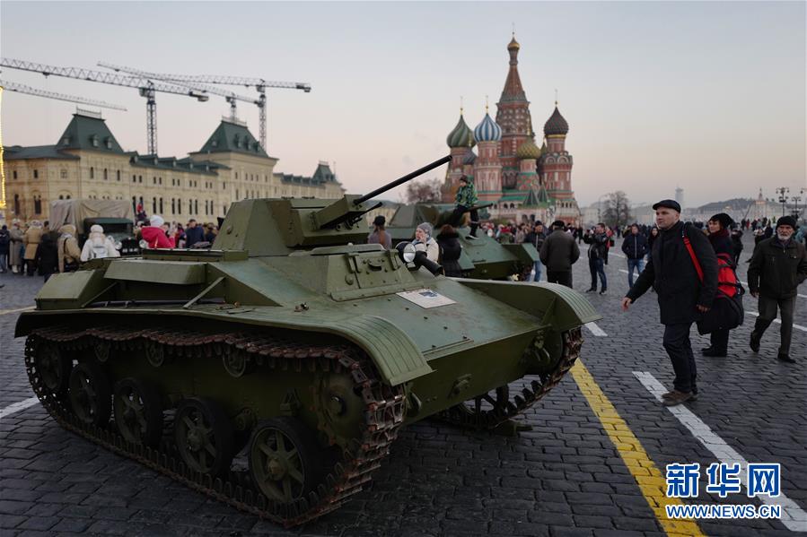 这是11月7日在俄罗斯首都莫斯科红场展出的T-60坦克。