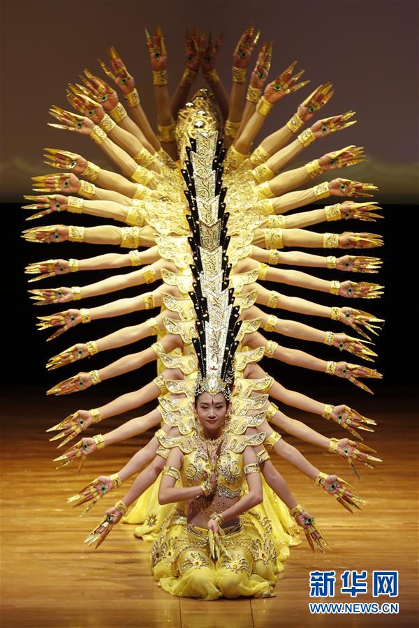 11月6日,在美国纽约林肯中心,中国残疾人艺术团艺术家们表演《千手观音》。 新华社记者李木子摄