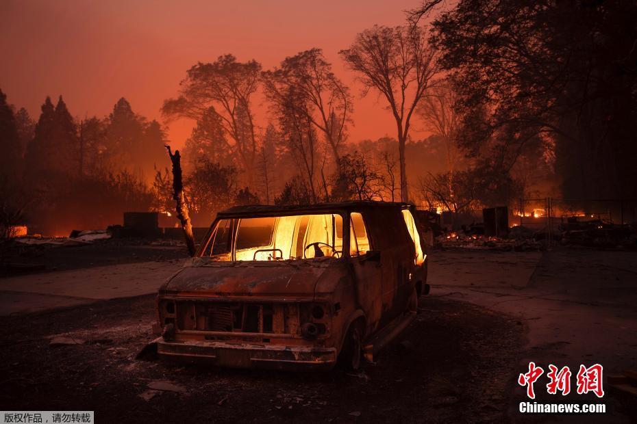 当地时间11月8日,美国加州Paradise发生火灾,烈火熊熊。在大风和低湿度的推动下,火势迅速蔓延,已席卷了周边城镇。在短短几小时内,超过1.8万英亩的土地被烧毁,一家医院、一个加油站和几十所房屋也被烧毁。