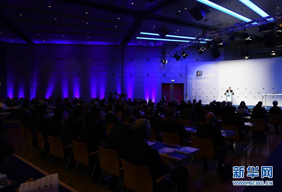 这是11月12日在德国法兰克福拍摄的第21届法兰克福欧元金融周开幕式。 新华社记者逯阳摄