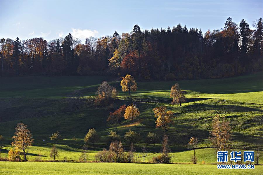这是11月12日在瑞士苏黎世一个公园内拍摄的深秋景色。 苏黎世位于瑞士中北部,是瑞士最大城市。 新华社发(米歇尔·立米纳摄)