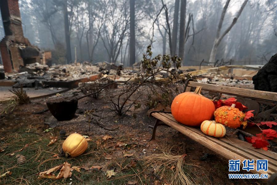 这是11月14日在美国加利福尼亚州天堂镇拍摄的山火过后的景象。