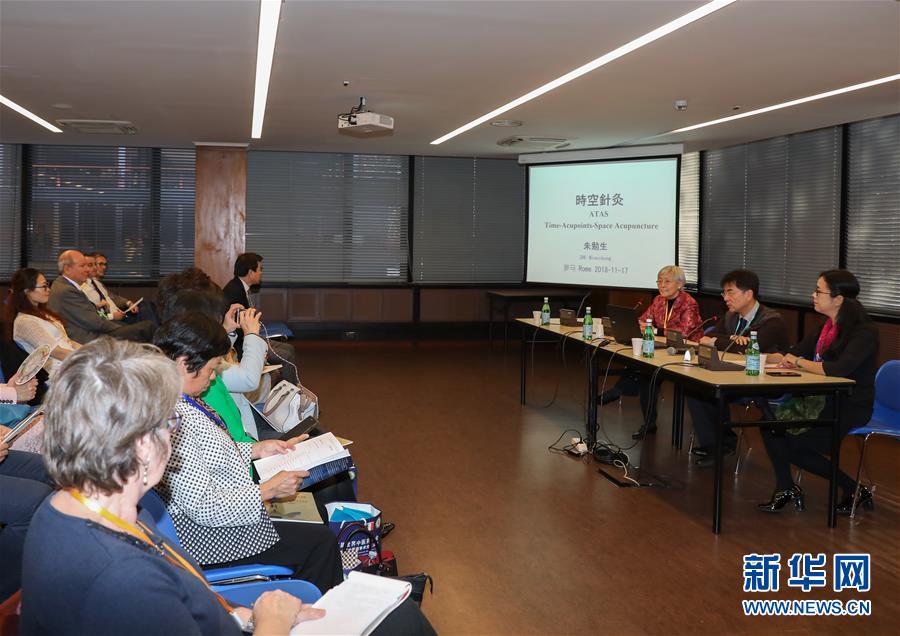 11月17日,在意大利罗马,代表进行关于针灸的学术交流。