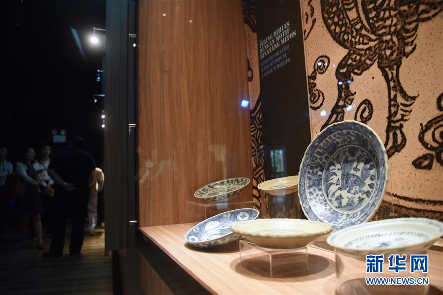 这是11月16日在文莱首都斯里巴加湾市的海事博物馆拍摄的来自中国的青花瓷。