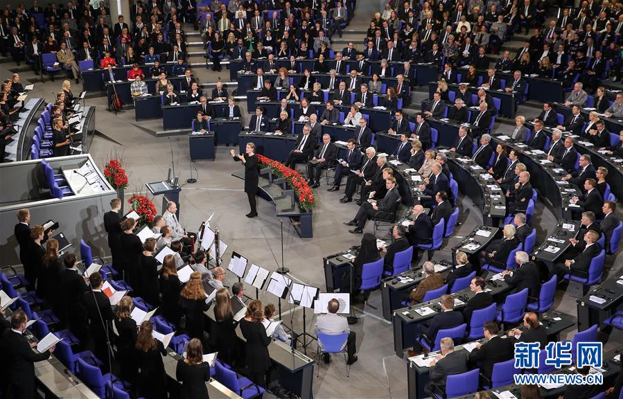 这是11月18日在德国首都柏林联邦议院拍摄的国民哀悼日活动现场。 正在德国访问的法国总统马克龙18日在位于柏林的德国联邦议院发表演讲,呼吁建设一个更加一体化、强大且独立的欧洲。马克龙当天访问德国,并在柏林参加德国一年一度的国民哀悼日活动。 新华社记者单宇琦摄