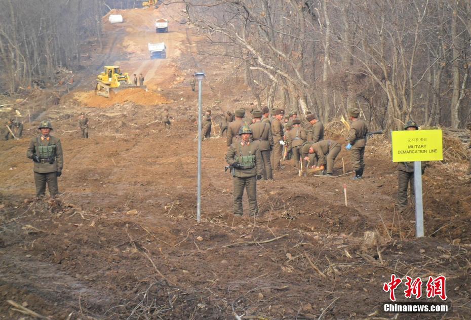 韩国国防部11月22日称,为支持韩朝阵亡军人遗骸共同挖掘工作等,双方在非军事区内铁原郡地区实现道路连通。 韩国国防部供图