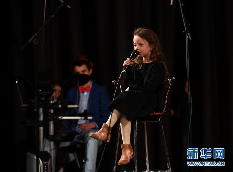 11月22日,在德国法兰克福,来自法兰克福辛德林格青少年话剧团的小演员在台上表演。新华社记者 逯阳 摄