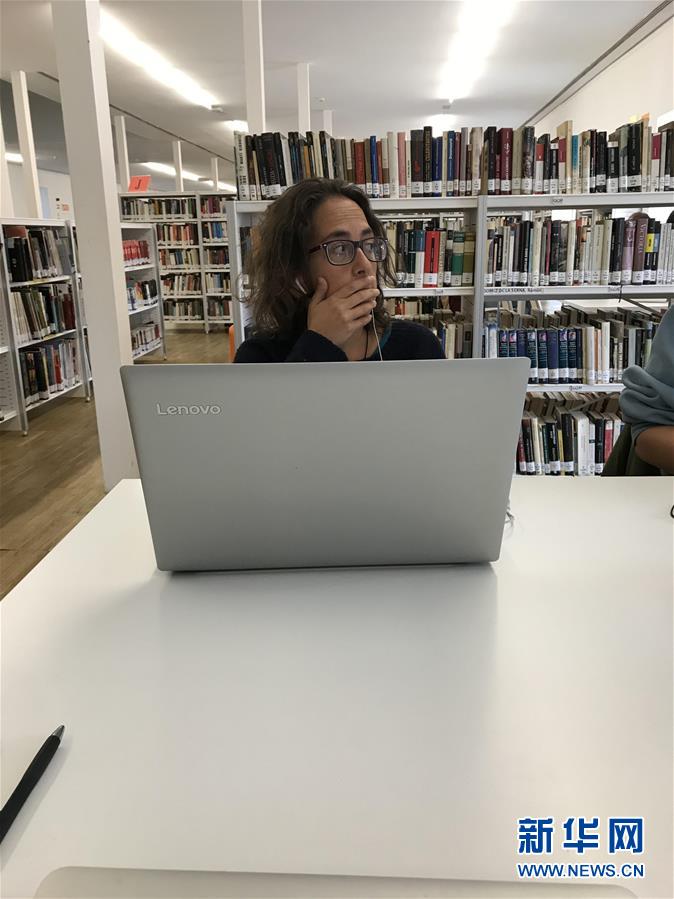2018年10月29日,一名市民在西班牙马德里孔德·杜克图书馆内使用联想电脑。新华社记者郭求达摄