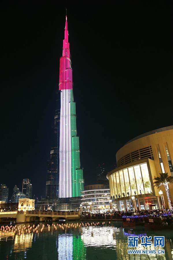 当日,阿联酋迪拜举行灯光和烟火秀,庆祝第47个国庆日。