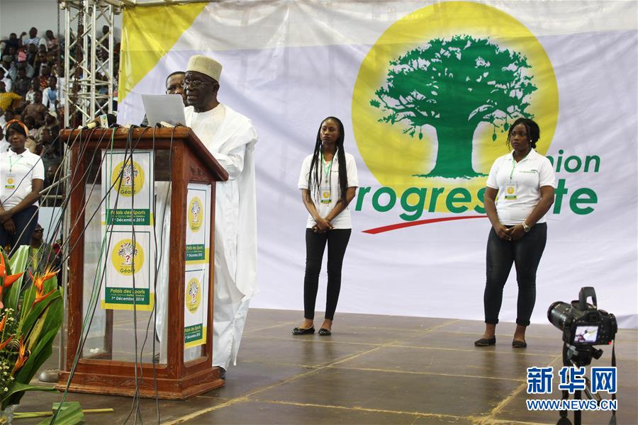 12月1日,在贝宁科托努,“进步联盟党”的发言人布鲁诺·阿穆苏在代表大会上讲话。新华社发(塞拉芬摄)