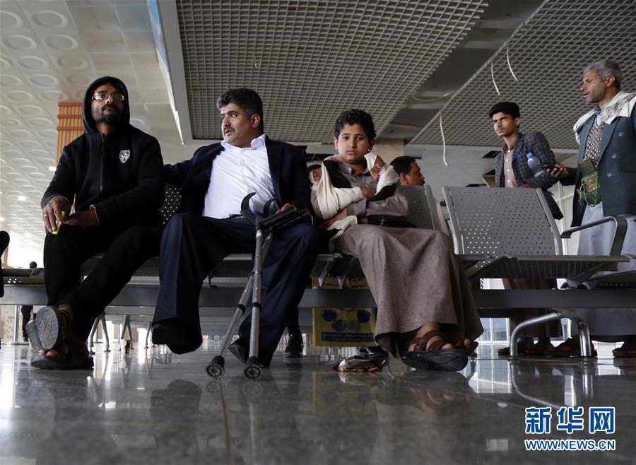 12月3日,胡塞武装伤员在也门萨那国际机场等待前往国外治疗。 新华社发(穆罕默德摄)