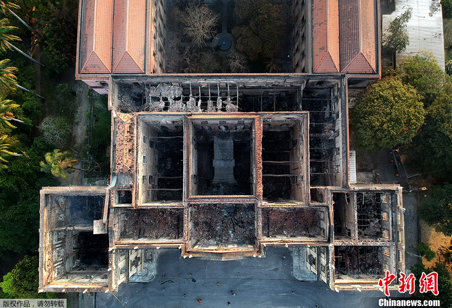 当地时间2018年9月3日,巴西里约热内卢,发生大火后的巴西国家博物馆。Mauro Pimentel