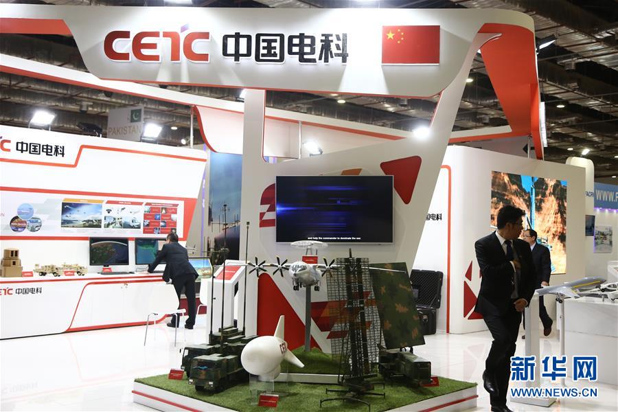 12月3日,在埃及首都开罗,人们在防务展上参观中国电子科技集团展区。