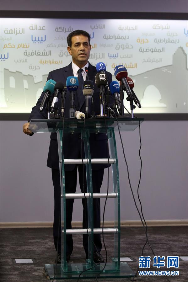 新华社照片,的黎波里,2018年12月6日 (国际)(3)利比亚可能于明年2月举行宪法公投 12月6日,在利比亚的黎波里,利比亚最高国家选举委员会主席伊马德·萨耶赫在新闻发布会上讲话。 当天,利比亚最高国家选举委员会宣布,若相关条件允许,利比亚将于2019年2月举行宪法全民公投。利比亚最高国家选举委员会主席伊马德·萨耶赫当天在的黎波里举行的新闻发布会上说,选举委员会经研究后认为,宪法公投可以在明年2月举行。 新华社发