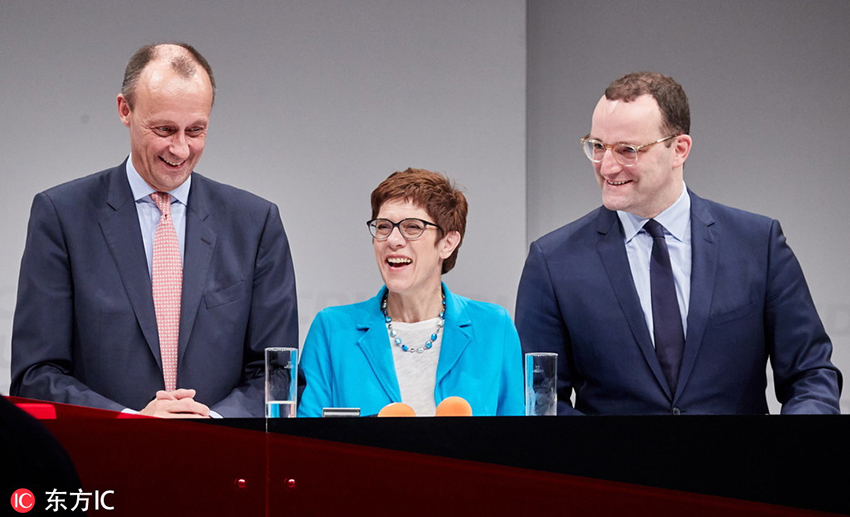 基民盟秘书长安妮格雷特-克兰普-卡伦鲍尔、联盟党前议会党团主席弗雷德里希-默茨和卫生部长延斯-施潘是呼声最高的三名候选人。(图片为东方IC版权作品 请勿转载)