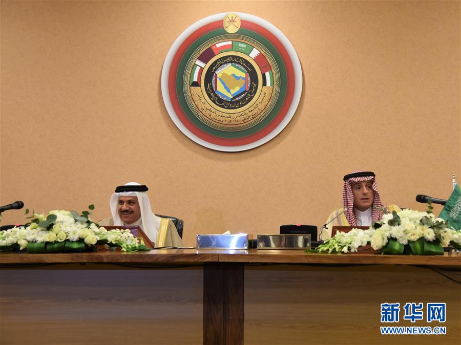 12月9日,在沙特阿拉伯首都利雅得,沙特外交大臣朱拜尔(右)和海湾阿拉伯国家合作委员会(海合会)秘书长扎耶尼出席新闻发布会。 新华社记者涂一帆摄