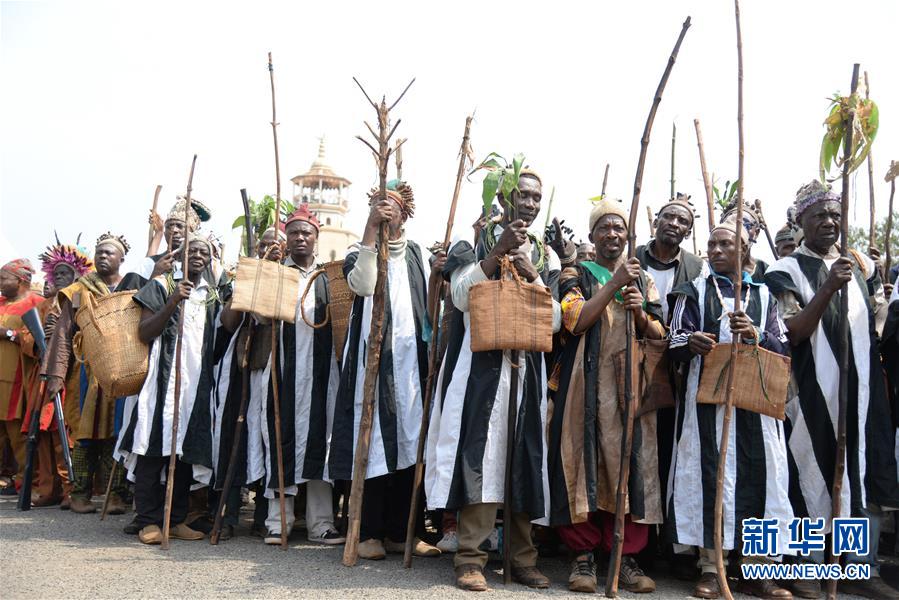 巴蒙王国是喀麦隆西部一支传统部族,拥有600多年历史。古恩节是巴蒙王国最重要的传统节日,其间会举行国王评议的古老仪式。从近代开始,古恩节每两年举行一次,今年于12月7日至9日举行。12月8日,国王接受子民的评议,该评议由古恩社团作为发言人代为完成。古恩社团代表用巴蒙语陈述国王过去两年来的功绩与失误,随后法官宣布,国王可保留王位,但须记过3次。此外,本届古恩节组织不力,致使王国圣物遭人践踏,因此罚国王交出10头山羊充公。国王欣然接受了判决。 这是12月8日,在喀麦隆丰班,古恩社团成员出席国王评议仪式。 新华社记者 乔本孝 摄