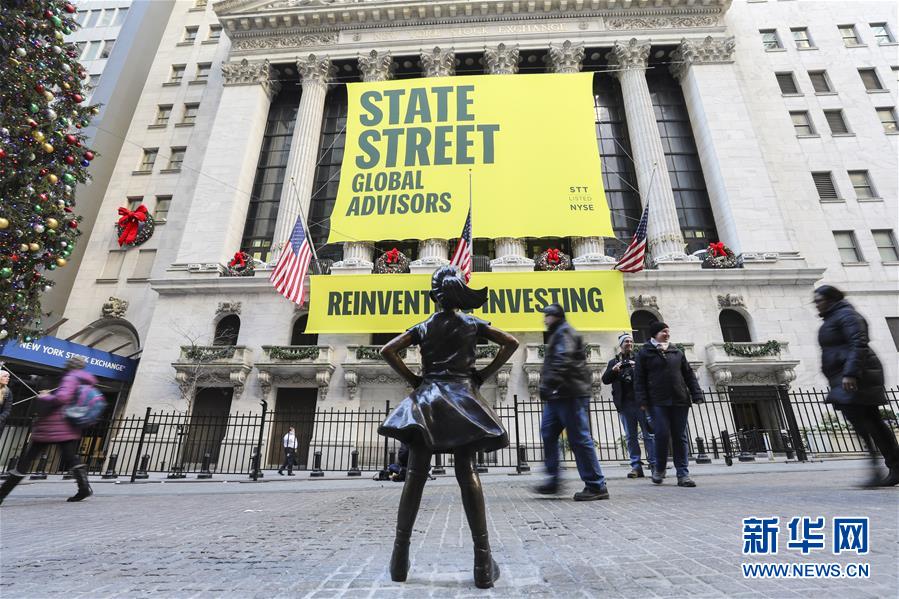 这是12月10日在美国纽约证券交易所前拍摄的“无畏女孩”铜像。