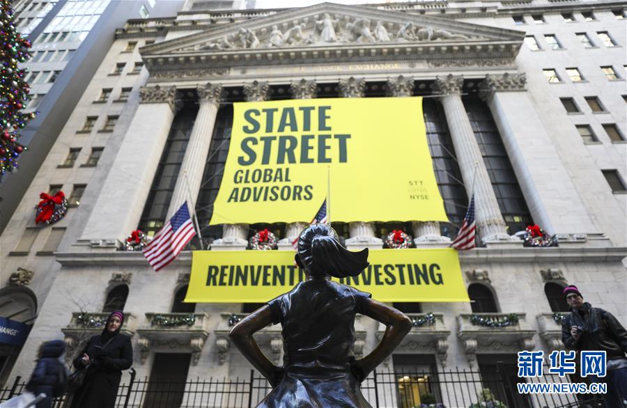 这是12月10日在美国纽约证券交易所前拍摄的“无畏女孩”铜像。 新华社记者 王迎 摄