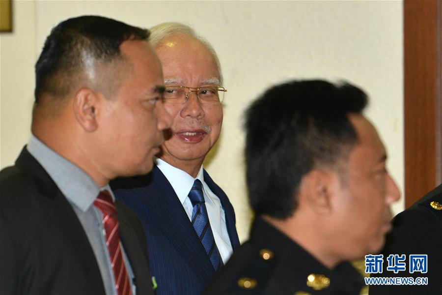 12月12日,在马来西亚吉隆坡,马来西亚前总理纳吉布(中)抵达法院。 新华社发(张纹综摄)