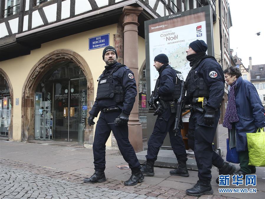 12月12日,警察在法国斯特拉斯堡市中心圣诞市场巡逻。新华社记者 叶平凡 摄