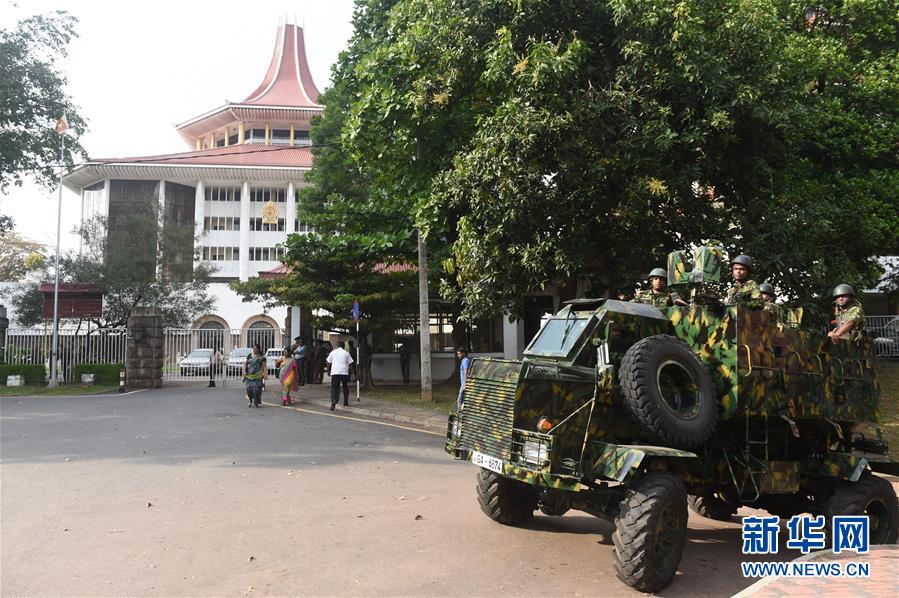 12月13日,在斯里兰卡科伦坡,斯警察特别任务部队成员在斯里兰卡最高法院附近巡逻。 斯里兰卡最高法院13日裁定,总统西里塞纳上月解散议会、并于明年提前举行议会选举的决定违反宪法。西里塞纳10月26日解散政府,解除维克勒马辛哈总理职务,并任命前总统拉贾帕克萨为新总理,组建看守政府,此举引发斯政局动荡。 新华社发(哈普拉彻奇摄)
