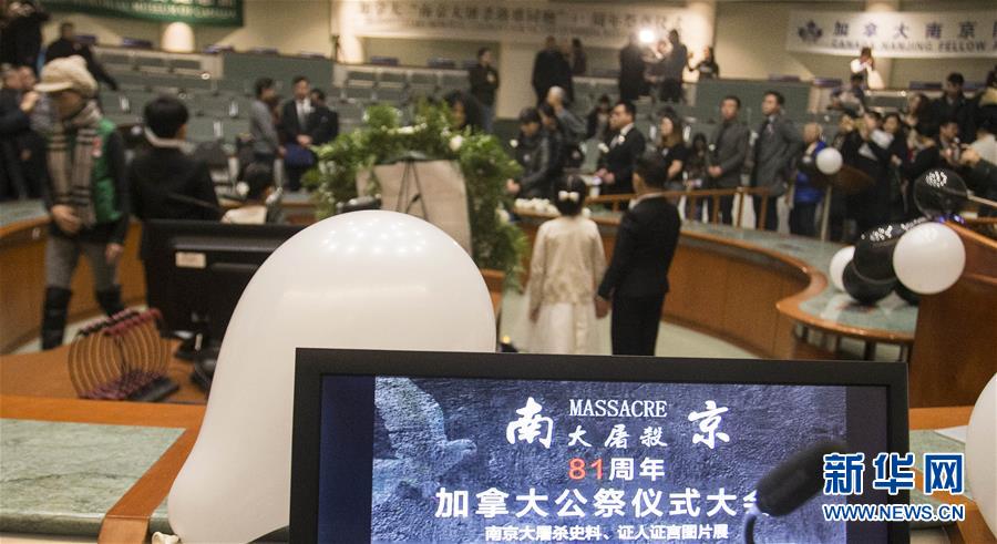 12月13日,在加拿大安大略省马克姆市政厅,人们在南京大屠杀纪念日公祭仪式上献花。 当日是加拿大安大略省的第二个南京大屠杀纪念日,当地华人社团联合在马克姆市举行公祭仪式,寄托哀思,祈福世界和平。 新华社发(邹峥摄)