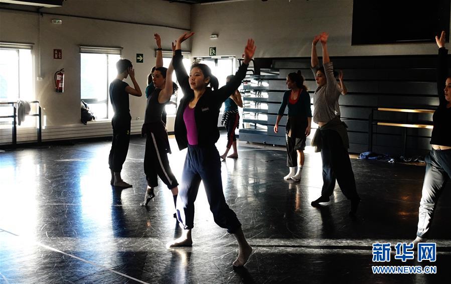 12月14日,在西班牙马德里,北京当代芭蕾舞团团员带领马德里高等舞蹈学院学生练习现代芭蕾舞剧《野草》中的舞蹈动作。 新华社记者 郭求达 摄