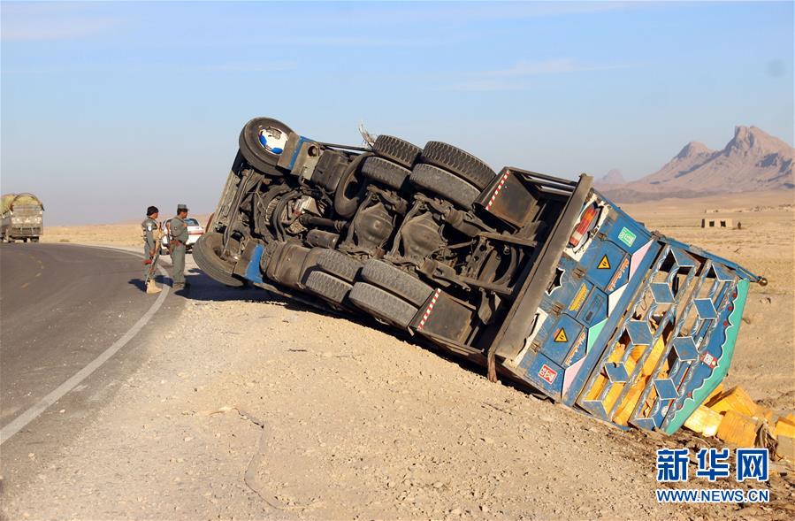 这是12月17日在阿富汗达曼地区拍摄的在交通事故中受损的卡车。 阿富汗南部达曼地区17日发生交通事故,一辆载客巴士和一辆卡车发生碰撞,造成至少3人死亡,40人受伤。 新华社发(萨纳乌拉摄)