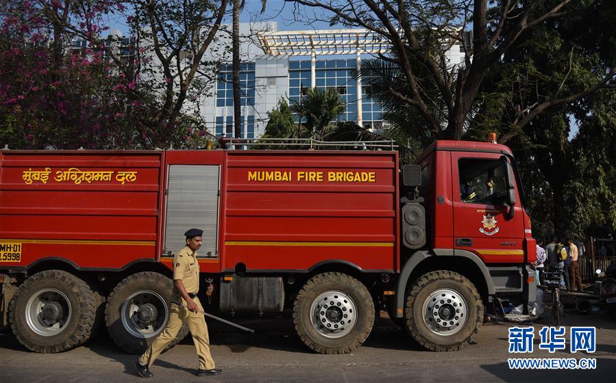 12月18日,在印度孟买,消防车停放在发生火灾的医院外。 印度孟买市西部郊区的一家医院17日发生火灾,造成6人死亡、100多人受伤。 新华社发