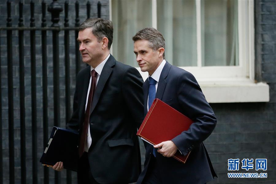 12月18日,在英国伦敦,英国国防大臣加文·威廉姆森(右)、英国司法大臣戴维·高克抵达唐宁街参加内阁会议。