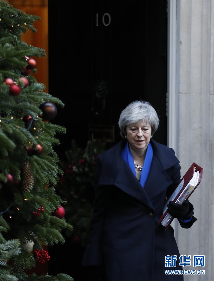 12月19日,在英国伦敦,英国首相特雷莎·梅离开唐宁街10号首相府,准备前往议会进行首相问答。 新华社记者 韩岩 摄