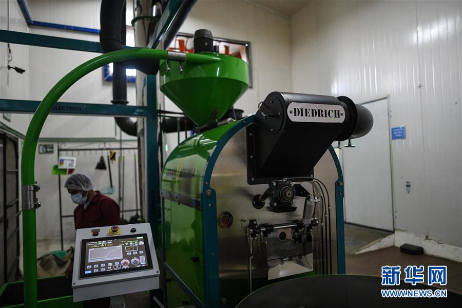 12月19日,在哥斯达黎加阿拉胡埃拉省维多利亚牌咖啡的工厂里,烘焙机正在烘焙咖啡豆。 新华社记者 辛悦卫 摄