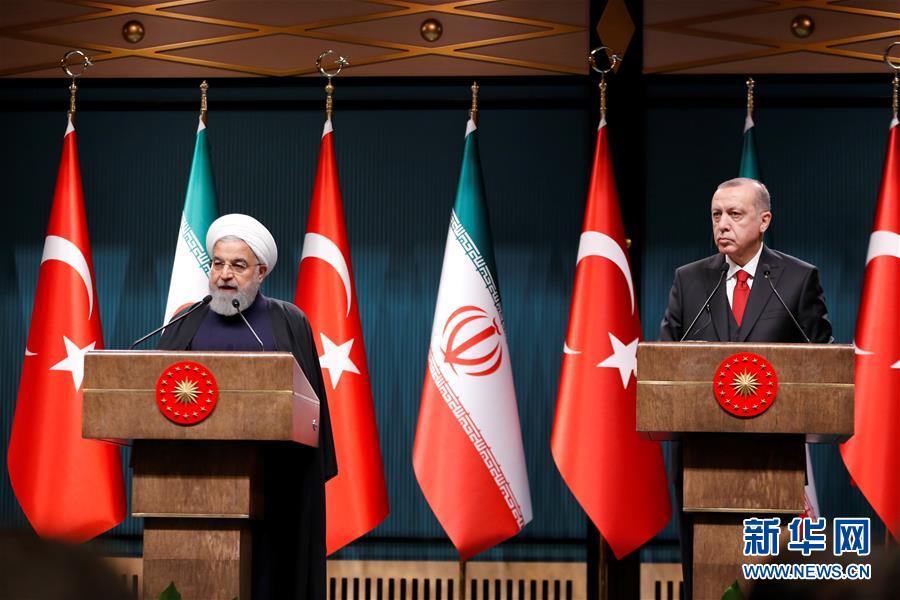 12月20日,在土耳其安卡拉,土耳其总统埃尔多安(右)与伊朗总统鲁哈尼出席联合记者会。 土耳其总统埃尔多安20日在首都安卡拉与来访的伊朗总统鲁哈尼举行的联合记者会上表示,美国对伊朗的制裁破坏地区安全与稳定,土耳其将继续与伊朗站在一起,加强两国各领域合作。 新华社记者 秦彦洋 摄