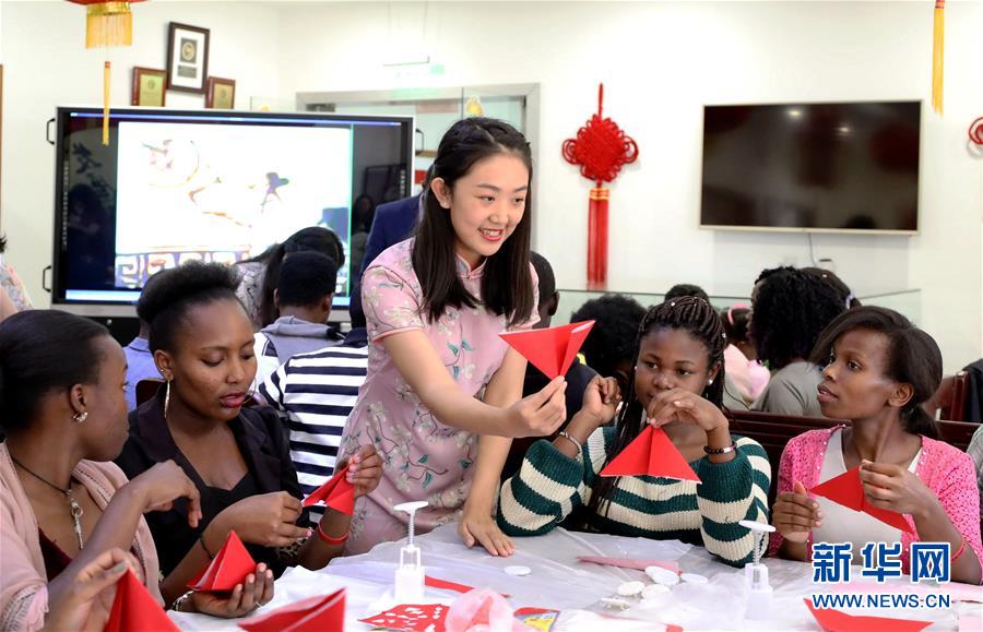 2018年9月,中非合作论坛北京峰会圆满成功,中非双方一致同意构架更加紧密的命运共同体。新时代中非关系积蓄起强劲动能,迎来广阔前景。中国是世界上最大的发展中国家,非洲是发展中国家最集中的大陆,中非全面加强各领域务实合作,友谊之树更加根深叶茂,合作成果更多惠及中非人民,将为人类开创更加美好的未来。 这是2018年9月21日,在肯尼亚内罗毕,一名中国志愿者教内罗毕大学孔子学院的学生剪纸。当日,肯尼亚内罗毕大学孔子学院举办中秋节庆祝活动,中肯两国师生欢度中国传统佳节。 新华社记者王腾摄