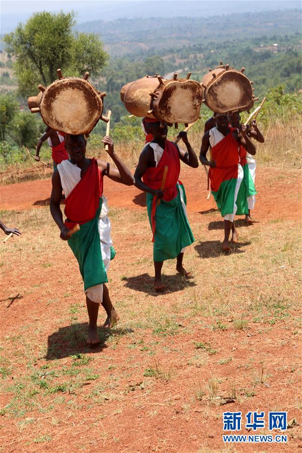 9月18日,在布隆迪中部省份基特加的基舒拉大鼓保护区,布隆迪鼓手们表演布隆迪大鼓。
