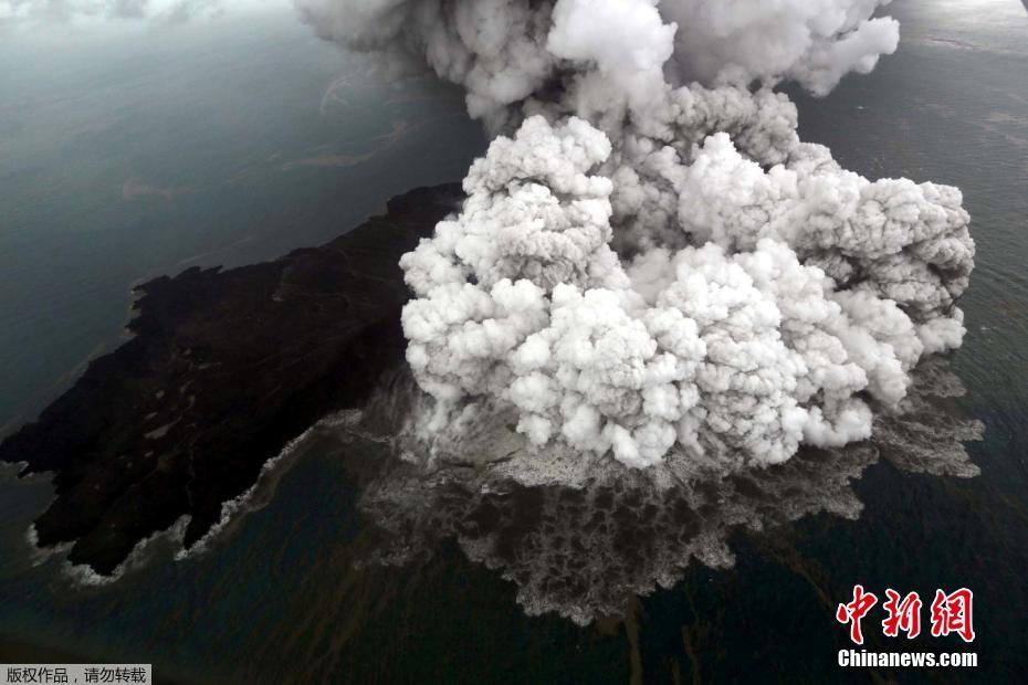 印尼海啸或为火山喷发引起 航拍喀拉喀托火山浓烟滚滚