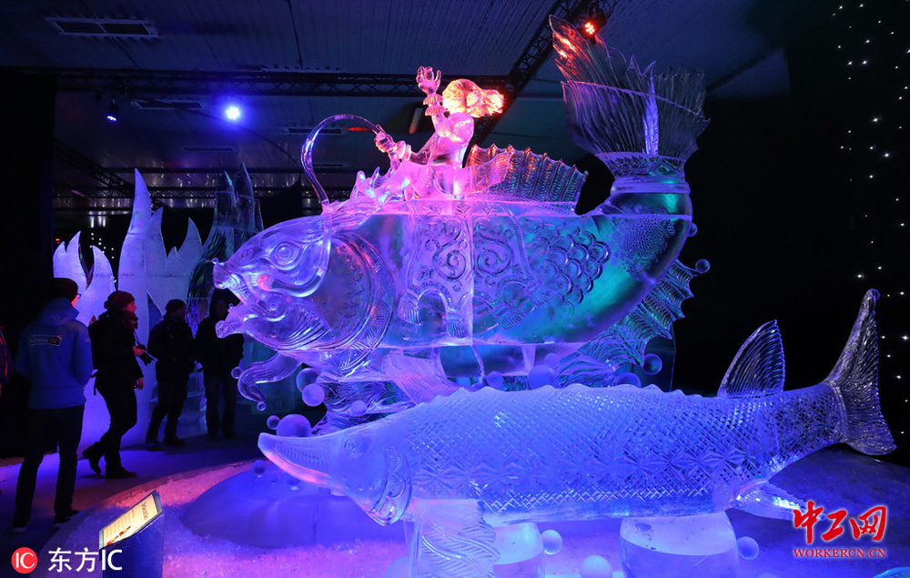 德国迎第16届冰川世界展-双龙冰雕栩栩如生2