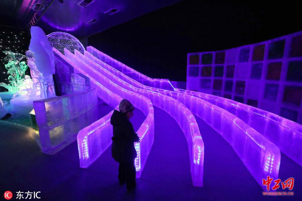 德国迎第16届冰川世界展 双龙冰雕栩栩如生