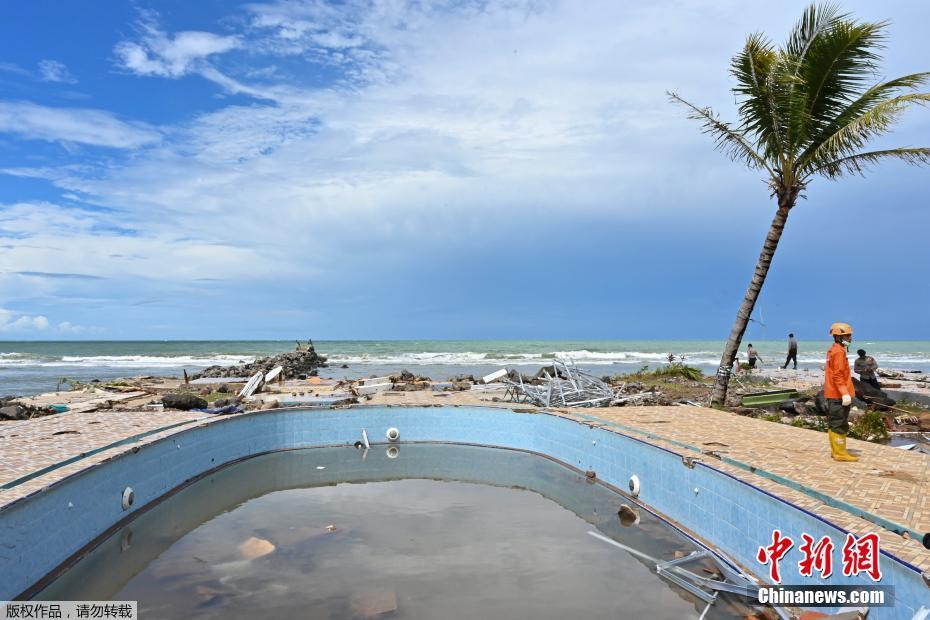 印尼度假海滩摧毁殆尽 废墟中钥匙还挂在门上