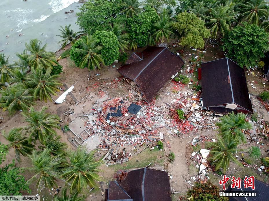印尼度假海滩摧毁殆尽 废墟中钥匙还挂在门上
